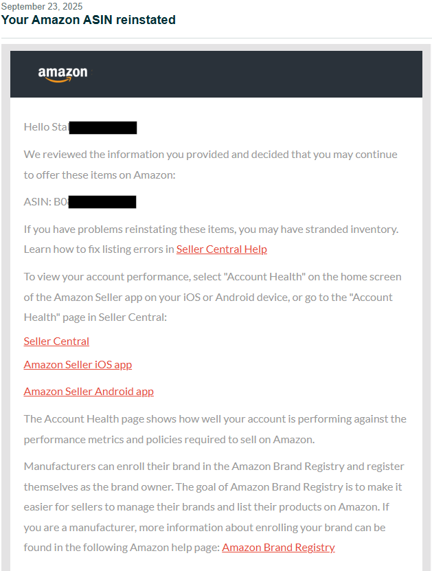 - Escalate internally if needed (via Amazon’s Seller Performance team).